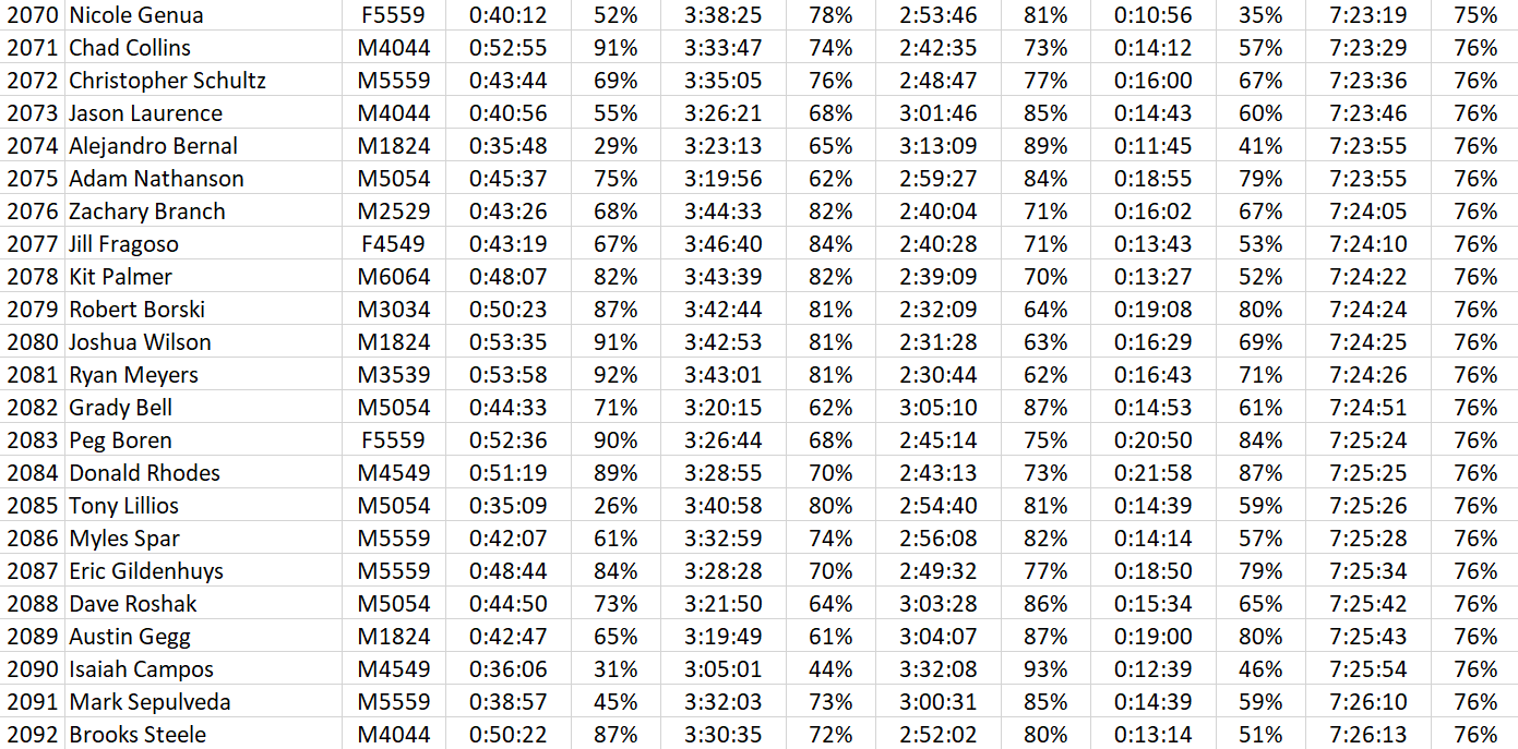Below is the results breakdown for St. George 70.3, and this post explains what this is if you need a refresher.